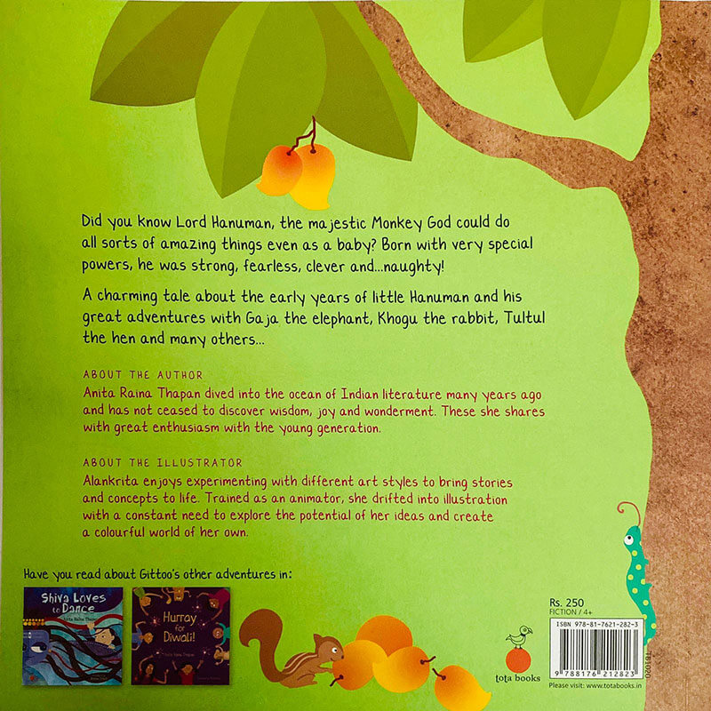 Did you know Lord Hanuman, the majestic Monkey God could do all sorts of amazing things even as a baby? Born with very special powers, he was strong, fearless, clever and naughty! A charming tale about the early ears of little Hanuman and his great adventures with Gaja the elephant, Khogu the rabbit, Tultul the hen and many others…
