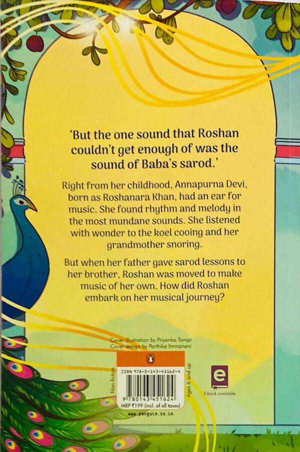 A unique biography that explores and celebrates the life of a musician as a passionate little girl. Right from her childhood, Annapurna Devi, born as Roshanara Khan, had an ear for music. She found rhythm and melody in the most mundane sounds. She listened with wonder to the koel cooing and her grandmother snoring. But when her father gave sarod lessons to her brother, Roshan was moved to make music of her own. How did Roshan embark on her musical journey?